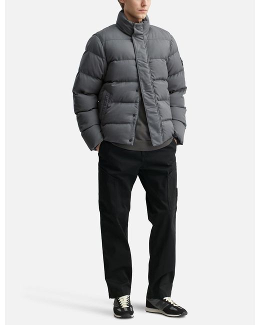 Stone IslandGhost Puffer JacketMade of woolDown-filledGarment dyed with anti-drop agentPadded standing collarTwo-way zipper and snap button closureMonocolour Stone Island Ghost badge on left sleeveRibbed cuffsZipper hand pocketsHem with drawcordInner buttoned pocket with compass logo embroideryMade in ItalyColor: V0067 - Dark Grey