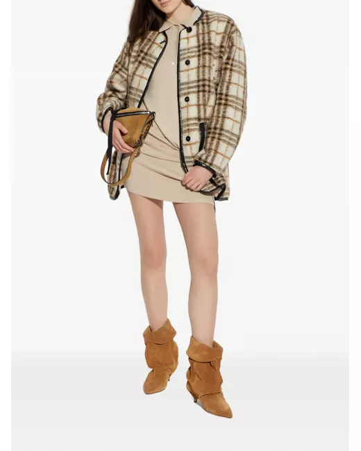 cream checked pattern drawstring fastening round neck button fastening long sleeves