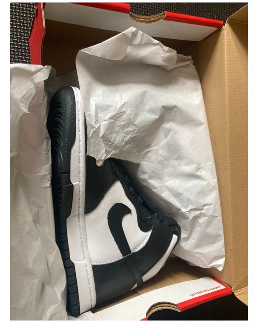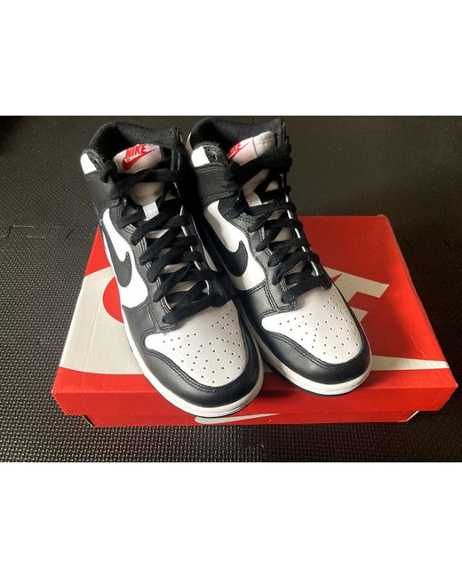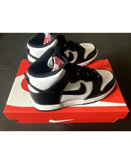 Elevate your sneaker game with these Nike Dunk High trainers in black and white, perfect for women who want to add a touch of style to their casual look. The high-top shoe shaft style provides ankle support, making them ideal for everyday wear or a day out with friends. These trainers have a UK shoe size of 6.5 and come from the popular Nike Dunk product line. The 2021 release features a panda theme, with black and white colours that will complement any outfit. The Nike Dunk High trainers are a must-have for any sneaker enthusiast looking for both comfort and style.