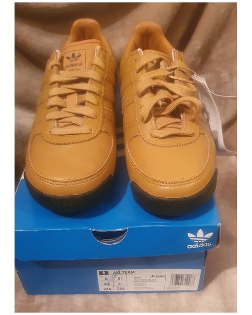 The Adidas Team Leather Trainers in size 5.5 are stylish and sporty sneakers designed for men and women. Made with quality leather, these lace-up trainers feature the iconic Adidas branding and are part of the Adidas Team product line. Perfect for adding a touch of athletic style to any outfit, these trainers are a versatile and comfortable choice for everyday wear.