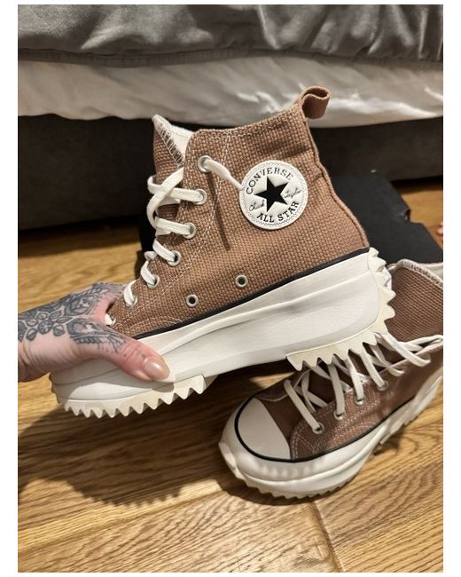 The product is a pair of Converse All Star Platform trainers in women's size UK 5.5, featuring a stylish pink colour and a lace-up closure. Only worn once Bought for £90 One small scuff on right shoe