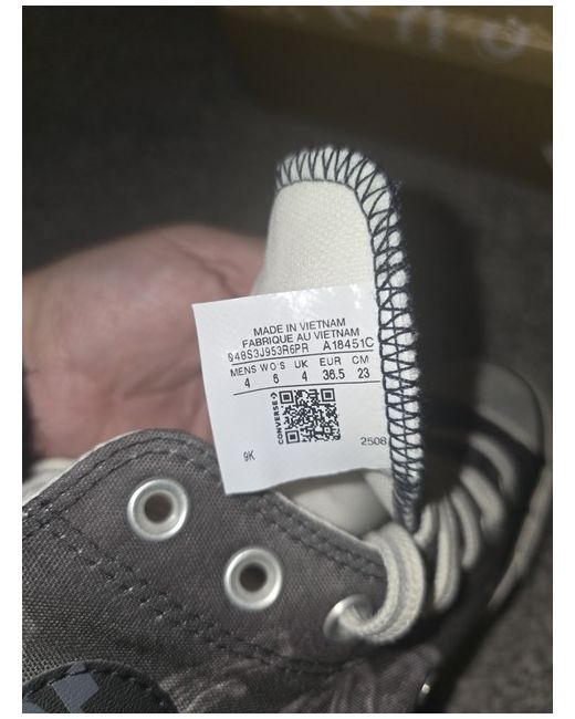 Will be sent in the packaging I recieved them in, can provide proof of purchase if required.. Brand new, never worn, would just like back atleast what I paid if possible.. These Charli XCX customised Converse trainers in UK size 4 are perfect for casual occasions during the summer season. The black canvas shoes feature a lace-up closure and rubber outsole, with a subtle logo accent. This iconic sneaker design by Converse is a stylish and comfortable choice for women looking to add a touch of personality to their footwear collection. Whether you're hitting the beach or grabbing drinks with friends, these Charli XCX Converse trainers are a must-have accessory for any fashion-forward woman.