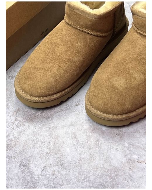 Made from premium suede with the signature UGGplush™ lining, these boots provide unbeatable coziness and a sleek, low-cut profile for easy on-and-off wear. Colour: Chestnut. Sizes: Multiple Sizes Available (select from dropdown).