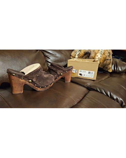 Made from brown leather suede with a stud design, these clogs feature a platform heel and braid strap accent. Perfect for travel or casual occasions, these ultra-high heels are suitable for all seasons and have a round toe and block heel style.