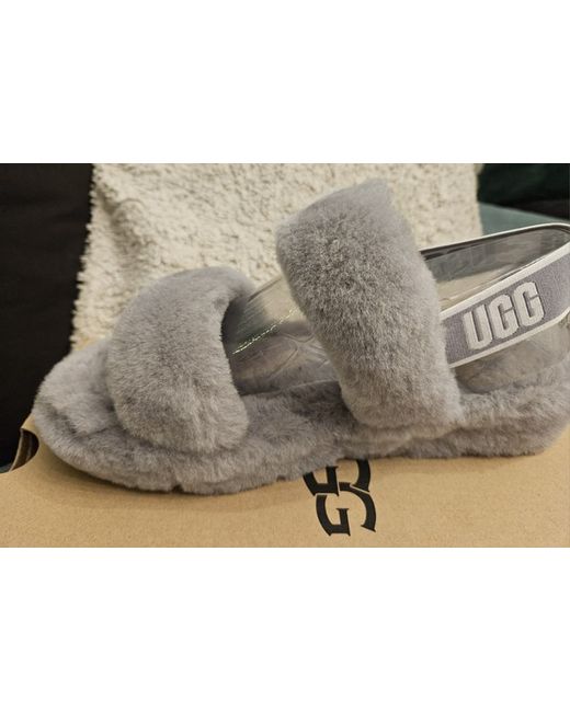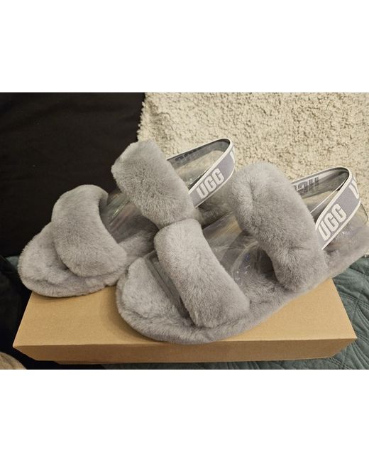 The Ugg Oh Yeah Fluffy Double Strap Flat Sandals in Grey are stylish and comfortable women's shoes perfect for adding a touch of luxury to any outfit. Made by UGG Australia, these strappy sandals feature faux fur upper material and a unique double strap design. The UK size 8 (US size 7, EU size 38) sandals come in a chic grey colour, making them a versatile and trendy choice for any fashion-forward woman looking to elevate her shoe collection.