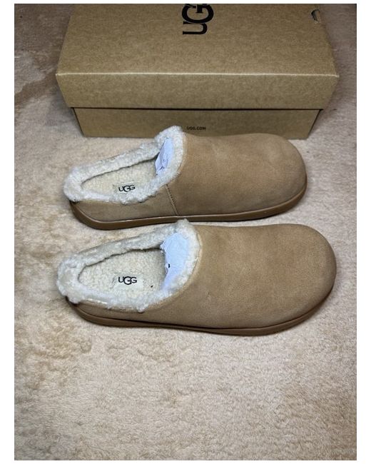 These Ugg slippers in size 7 are a stylish and comfortable choice for women looking for a slip-on design. Made from brown suede, they are perfect for lounging around the house or running quick errands. The slipper style offers easy wearability, making them ideal for those who prefer a relaxed and casual footwear option. The Ugg brand ensures both quality and fashion-forward design, making these slippers a must-have for any woman's wardrobe.