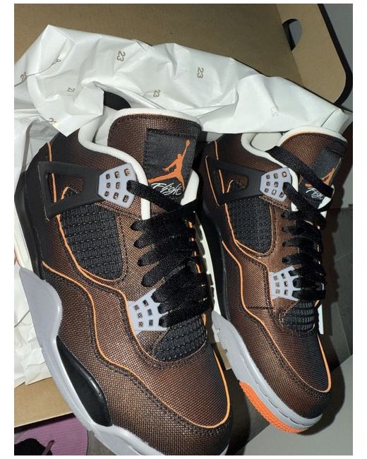 The Air Jordan 4 Starfish is a stylish women's trainer in a vibrant orange colourway, featuring a lace-up closure and standard shoe width. This model is from the iconic Air Jordan product line, designed for casual wear and basketball activities. With a retro theme and rubber outsole, this sneaker offers both comfort and style for the spring season. Perfect for those who appreciate the Jordan brand and love a bold, eye-catching design.