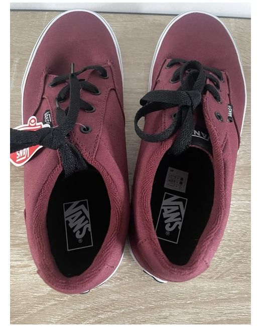 The VANS Atwood Canvas Trainers in oxblood and white, UK size 5, are a stylish and comfortable option for casual wear. Featuring a low top design with a lace-up closure, these trainers are perfect for everyday use. The canvas lining and rubber outsole provide durability and support, while the brand's logo adds a touch of personality to the overall look. These VANS trainers are a must-have for women looking for a trendy and practical footwear choice.