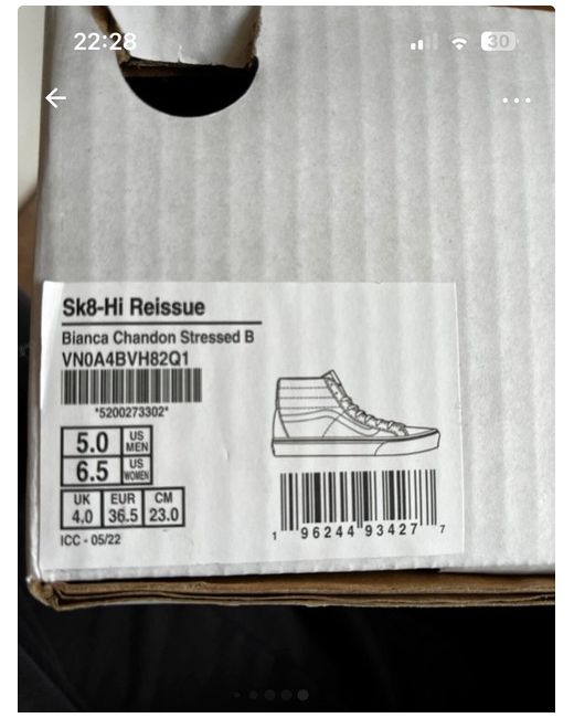Vans X Bianca Chandon sneakers Size 4 uk Eu 36.5 Size 6.5 US Women / Men 5 They have a distressed look. Brand new Comes with original box From a smoke free home