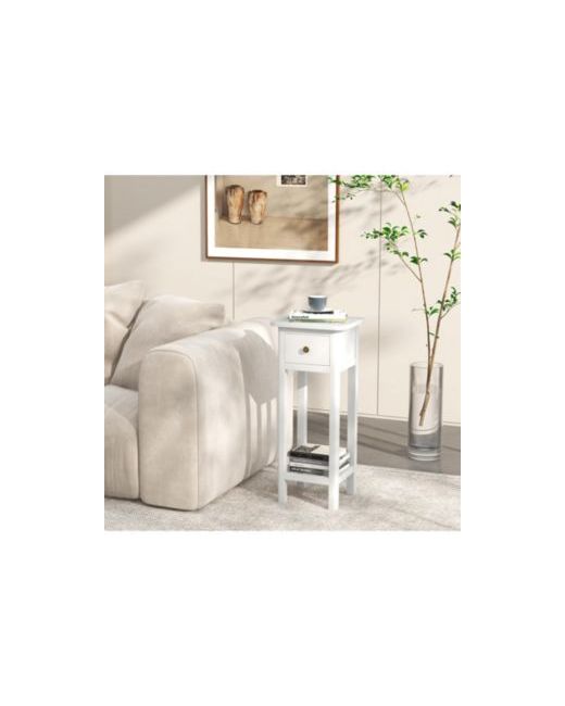 Infusing timeless elegance into any space, this vintage-inspired rectangular side table is crafted from reliable acacia wood that resists warping. Its elegant finish enhances your living area's aesthetic, while extra storage keeps the room neat and organized. Safe rounded edges protect your family, and a convenient knob provides easy access inside. With a compact 13.5-inch width, it fits smoothly into any setting without overwhelming the space—perfect for creating a cozy corner. Fully assembled and ready to use, no installation is needed.