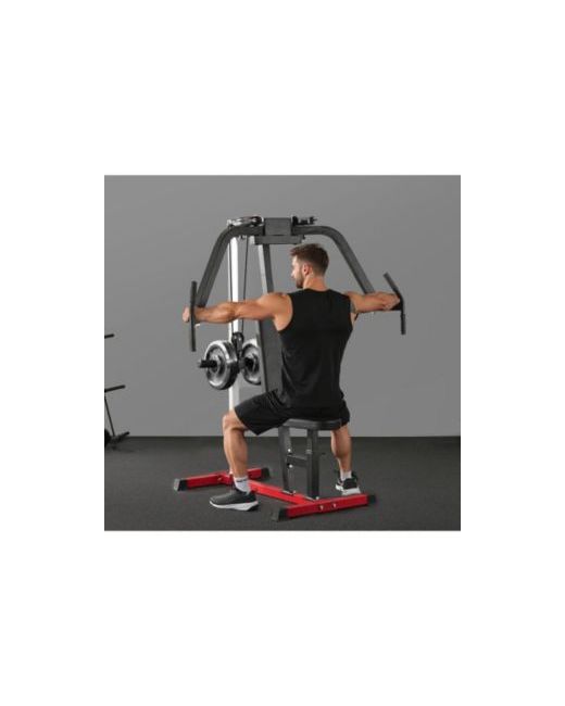 This adjustable chest fly and reverse delt machine targets the chest, back, shoulders, and rear delts. Built with heavy-duty steel and smooth bearings, it supports up to 450 lbs. The padded seat adjusts for proper alignment, while plate holders fit 1" and 2" plates for customizable resistance. Ideal for home gyms.