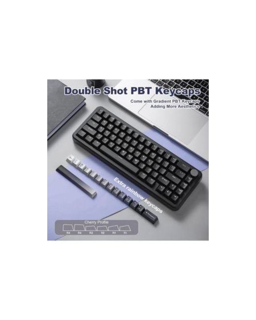 The B68 is a versatile tri-mode wireless mechanical keyboard (Bluetooth/2.4G/wired) with 5000mAh battery for all-day use on Windows/MacOS. Its hot-swappable design and pre-lubed linear switches deliver a smooth, customizable typing feel, while the 5-layer gasket mount and sound-dampening foams ensure a creamy, quiet keystroke. Stand out with Rgb backlighting, rainbow Pbt keycaps, and a multifunction knob for volume/Rgb control—all packed into a 65% compact layout perfect for productivity, gaming, and Diy enthusiasts.