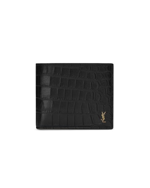 Men's Black Tiny Cassandre East-West Wallet Crocodile-Embossed Matte