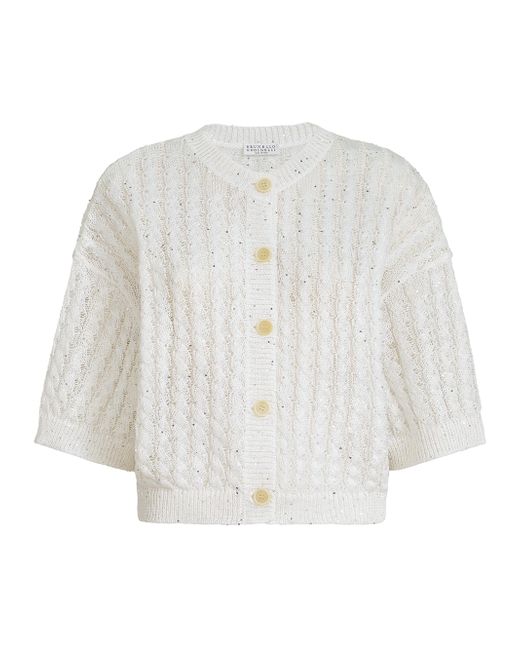 Linen dazzling cable openwork cardigan. Button closure Rib knit crewneck Drop shoulder Wide sleeve Rib knit cuffs and bottom band Cable knit Request dry cleaning at specialist cleaner's only, do not bleach. Do not tumble dry, iron at low temperature 94% linen, 6% nylon Made in Italy. Lsd Rtw - Brunello Cucinelli Rtw > Brunello Cucinelli > Saks Fifth Avenue. Brunello Cucinelli. Color: White. Size: Medium.