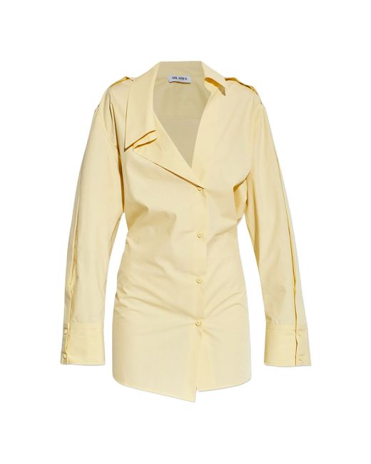 Women's Yellow Mini Buttoned Collared Dress