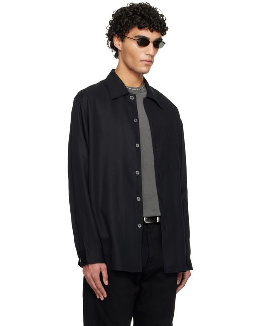 Lyocell twill shirt. · Spread collar · Button closure · Patch pocket at chest · Vented side seams · Dropped shoulders · Buttoned barrel cuffs · Gathering at back yoke · Mother-of-pearl hardware Supplier color: Draping black lyocell