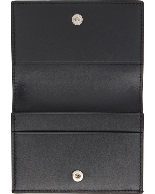 Buffed calfskin bifold card holder. · Logo stamp at face · Press-stud closure · Three card slots and one patch pocket at interior · Buffed calfskin lining · H2.75 x W4 x D0.5 Supplier color: Black