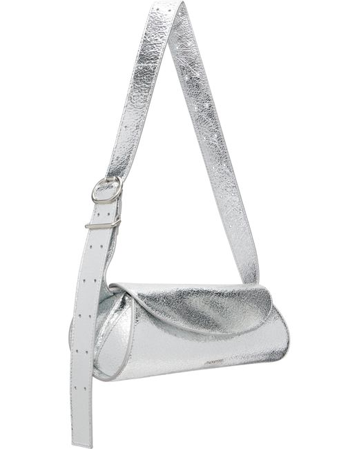 Crackled laminated leather shoulder bag. · Adjustable shoulder strap · Logo hardware at face · Magnetic closure · Card slot at interior · Nappa leather lining · H4.5” x W10.5” x D4” Supplier color: Atlantic Deep