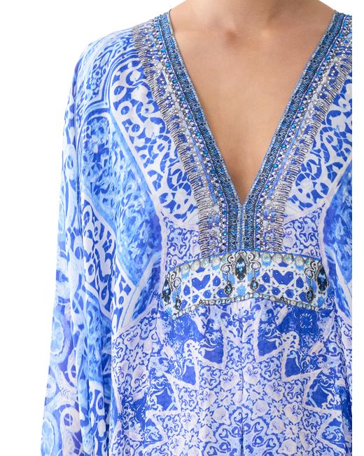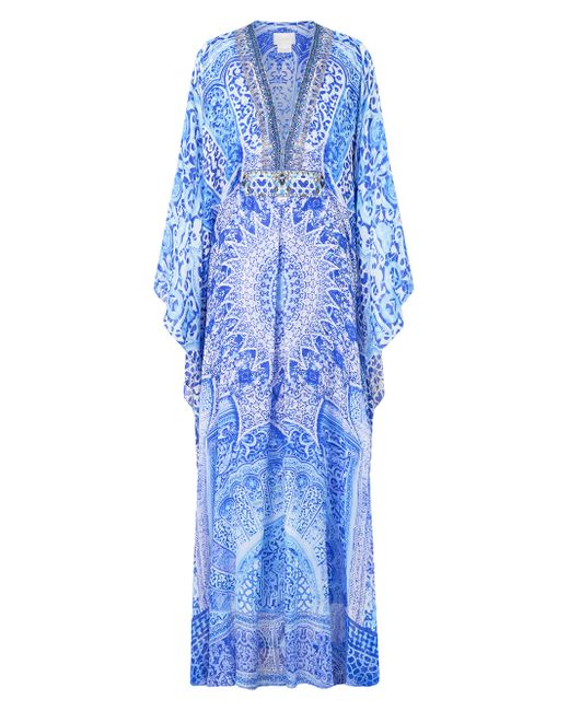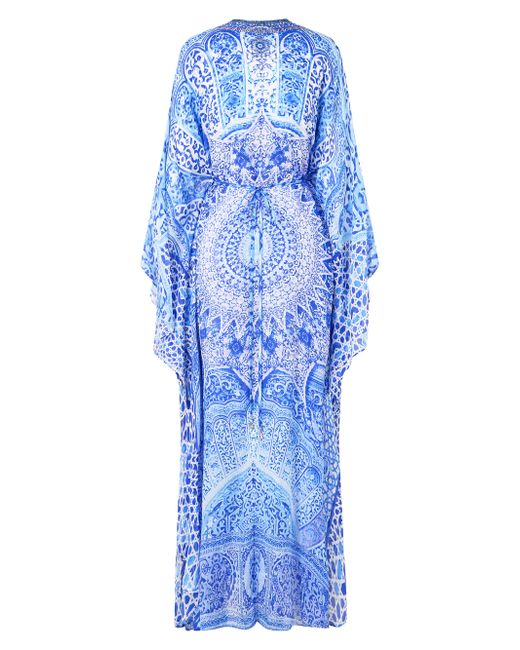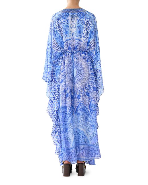 Camilla's wispy maxi caftan is crafted of a delicate silk detailed with a striking medallion print. Tailored with a deep V-neckline, this piece features long draped sleeves and an easy pullover silhouette. Plunging V-neck Long sleeves Pulls over 100% silk Dry clean Imported SIZE & FIT Model measurements: 5'10" tall Model is wearing a US size Small ABOUT THE BRAND Camilla's line of warm-weather separates, dresses and swimwear is reminiscent of the brand's birthplace on the shores of Bondi Beach in Australia. Renowned founder and Creative Director Camilla Franks oversees exquisitely produced and often-handmade designs. Created for the artistic globetrotter who can't get enough of the beach, Camilla's pieces come to life through vivid color and print. Outerwear And Swimwear - Contemporary Swim > Camilla > Saks Fifth Avenue. Camilla. Color: Blue Multi.