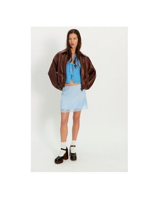 A silky base is adorned with a stunning lace overlay and vintage-style zig-zag seams on this mini slip from Intimately. **Fit:** Mini length, A-line, mid-rise **Features:** Silky fabrication, elastic waistband, lace overlay at hem, zig-zag seams **Why We ❤ It:** An absolutely versatile styling piece. Party Crashers Half Slip by Intimately at Free People in Blue Finch, Size: XS
