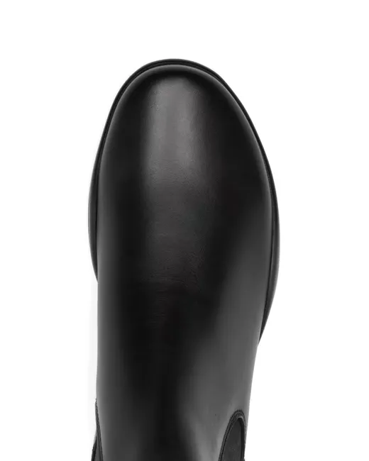 black leather pull tab at the rear elasticated side panels round toe low heel