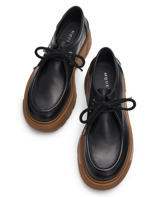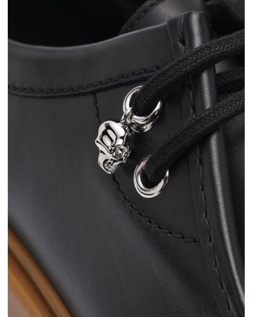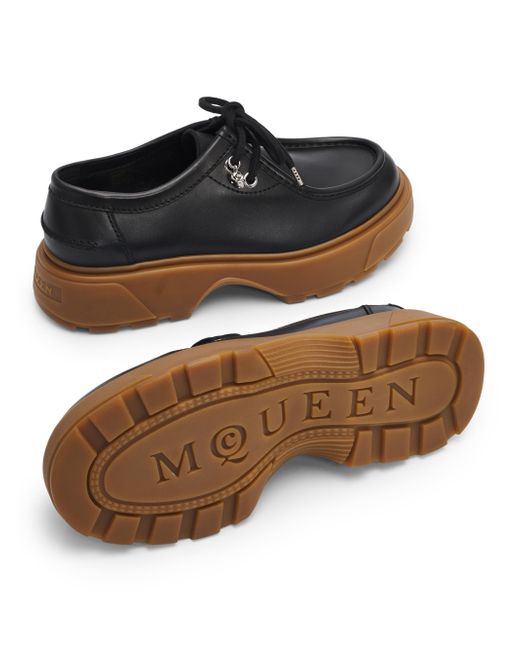 These Rover shoes from McQueen are crafted of leather in a soft, round-toe silhouette, featuring tonal laces with a signature skull charm hanging from the right shoe. They are finished with a chunky lug sole and the embossed McQueen logo on the back heel. Round toe Lace-up style Leather upper Rubber sole Made in Italy SIZE Platform: about 2"(50mm) ABOUT THE BRAND Visionary designer Lee Alexander McQueen launched his brand in 1992, which quickly became synonymous with cutting edge, avant-garde design. Creative Director Seán McGirr has continued the designer's legacy, bringing precision craftsmanship and a sharp attention to detail to the brand's menswear and iconic sneakers. Men's Shoes - A Mcqueen Mens Footwear > Mcqueen > Saks Fifth Avenue. McQueen. Color: Black. Size: 6.