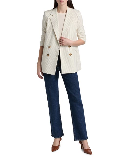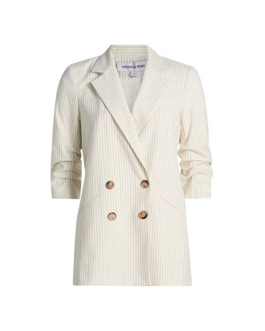 The Rupert Dickey jacket from Veronica Beard features a striped double-breasted design. Notch lapels Three-quarter-length sleeves, button cuffs Chest welt pocket Side welt pockets Button-front closure 67% polyester/29% viscose/4% elastane Lining: 100% cupro Dry clean Imported SIZE & FIT About 30" from shoulder to hem Model measurements: 5'10" tall Model is wearing a US size 4 ABOUT THE BRAND Veronica Beard was founded by sisters-in-law Veronica Miele Beard and Veronica Swanson Beard in 2010. With a strong belief in enduring personal style, the co-designers focus on elevated everyday pieces, like their signature structured blazers and easy-chic dresses. Contemporary Sportswear - Veronica Beard > Veronica Beard > Saks Fifth Avenue. Veronica Beard. Color: Dove Multi. Size: 00.