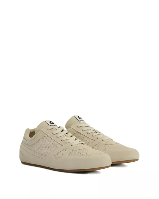 beige leather perforated detailing lace-up fastening rubber sole logo patch
