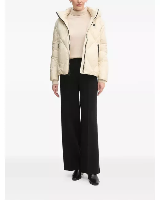 beige quilted design hooded zip fastening logo patch side zip pockets
