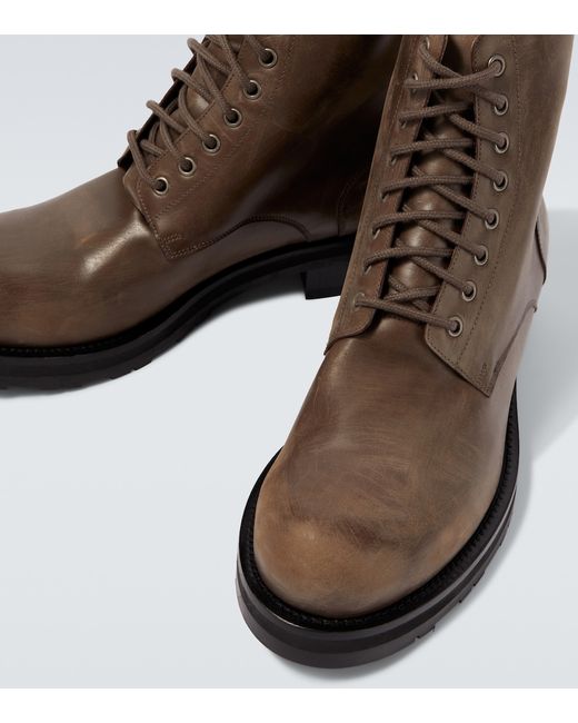 Upper: calf leather. Lining: leather. Sole: leather insole, rubber sole. Toe shape: round toe. Made in Italy. Includes: shoe box. Designer color name: Dark Taupe. Item color: brown. Closure: lace-up.