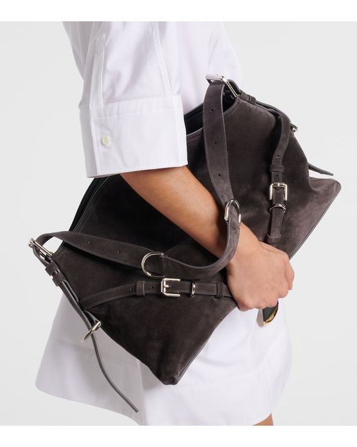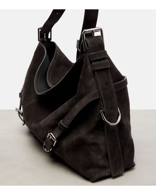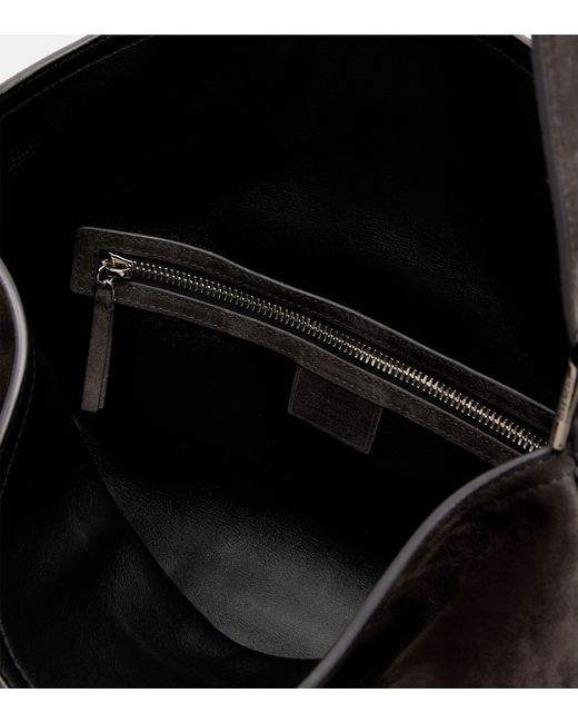 Material: leather (suede). Lining: leather. Made in Italy. Designer color name: Dark Grey. Item color: gray. Hardware color: silver. Closure: open top. Adjustable shoulder strap. Internal details: internal zipped pocket. Leather.