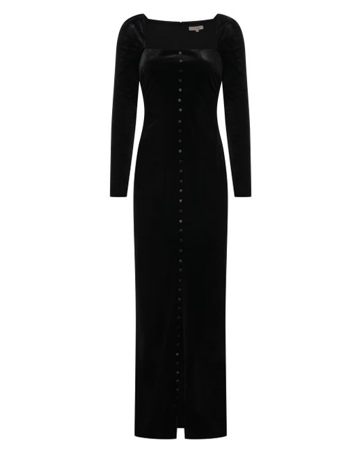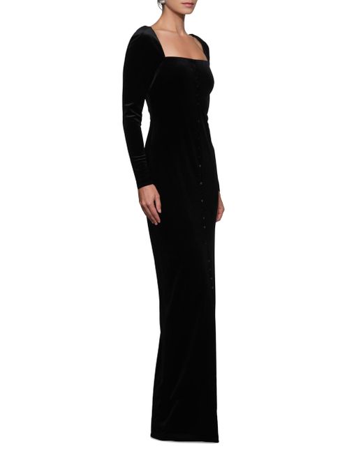 Crafted of rich stretch velvet, the Bexley gown from Et Ochs is cut for a fitted silhouette with an elegant square neck. A mock mini button-front placket and attached gloves complete the design. Square neck Long sleeves with attached gloves Back zip closure 95% polyester/5% spandex Dry clean Imported SIZE & FIT About 62.25" from shoulder to hem Model measurements: 5'10" tall Model is wearing a US size 4. Contemporary Sportswear - Trend > Et Ochs > Saks Fifth Avenue. Et Ochs. Color: Black. Size: 0.