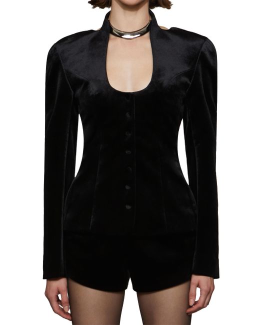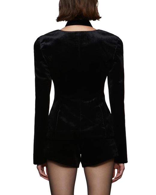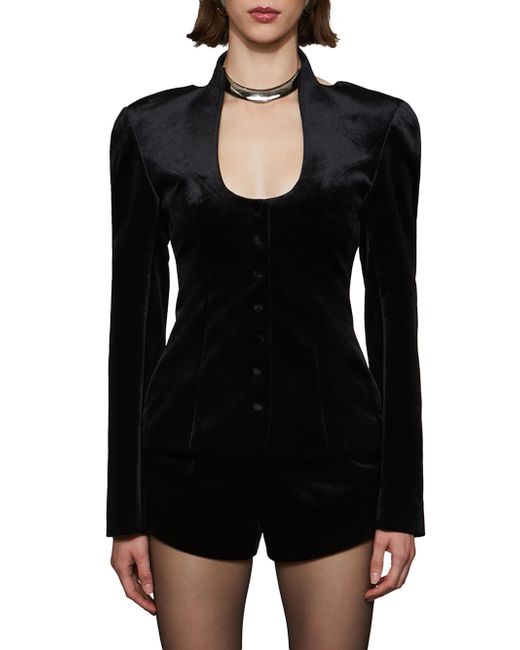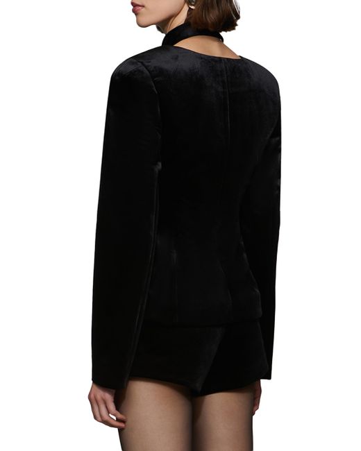 Crafted of rich woven velvet, the Vaud jacket from Et Ochs features a scooped neck with an upperback cut out. Princess seams and fabric-covered buttons complete the design. Scoopneck Long sleeves Button-front closure 100% polyester Dry clean Imported SIZE & FIT About 26.25" from shoulder to hem Model measurements: 5'10" tall Model is wearing a US size 4. Contemporary Sportswear - Trend > Et Ochs > Saks Fifth Avenue. Et Ochs. Color: Black. Size: 0.