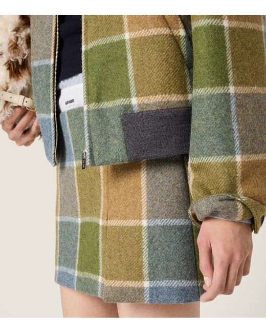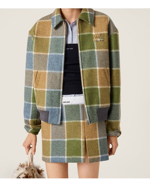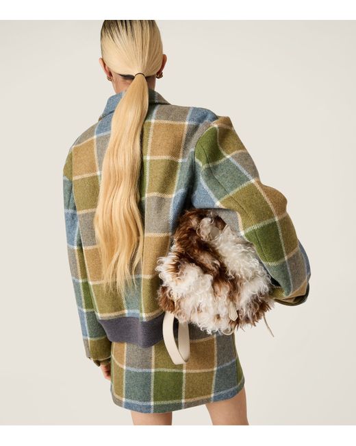 This Miu Miu bomber jacket captures the nostalgic essence of '90s menswear, reimagined in timeless check. A shirt-style collar and rib-knit trims introduce a collegiate touch, while the plush fleece construction softens the silhouette for a pared-back finish that feels effortlessly seasonal.