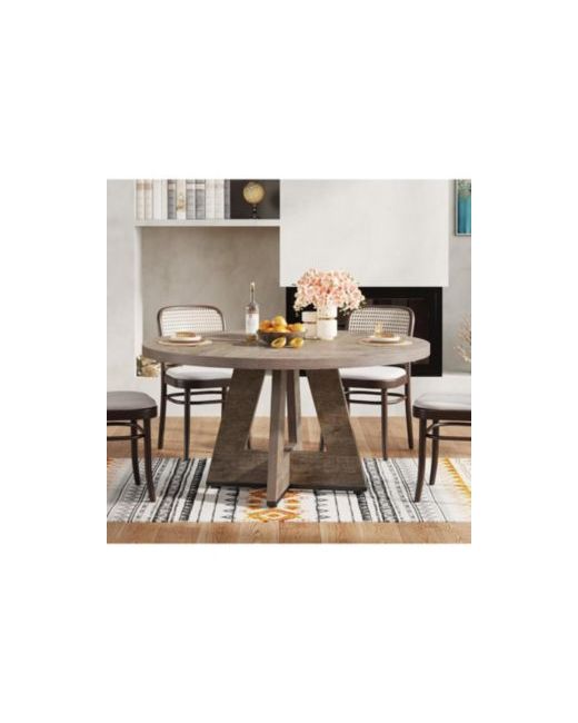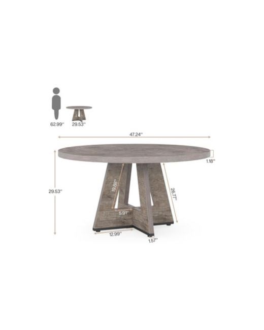 This round dining table measures 47 inches in diameter, comfortably seating up to four people for intimate family meals.
