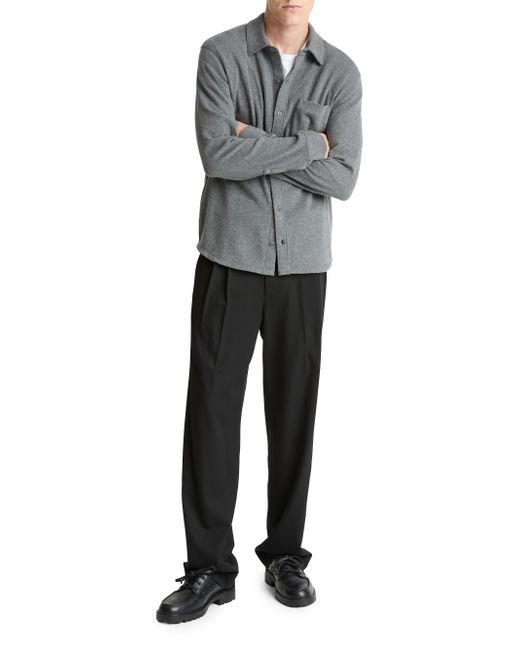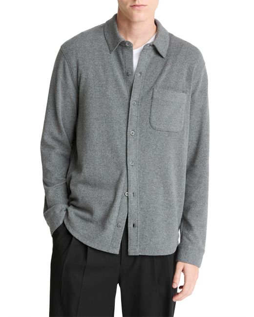 Knit from a cotton blend, this Vince shirt is cut for a classic fit. A spread collar, chest patch pocket, and shirttail hem complete this button-front style. Spread collar Long sleeves, button cuffs Chest patch pocket Shirttail hem Button-front closure 77% cotton/19% polyester/4% elastane Hand wash Imported SIZE & FIT Model measurements: 6'2" tall, 40" chest, 31" waist Model is wearing a US size Medium. Mens Modern Coll & Outer - Modern Collections > Vince > Saks Fifth Avenue. Vince. Color: Med Grey. Size: Large.