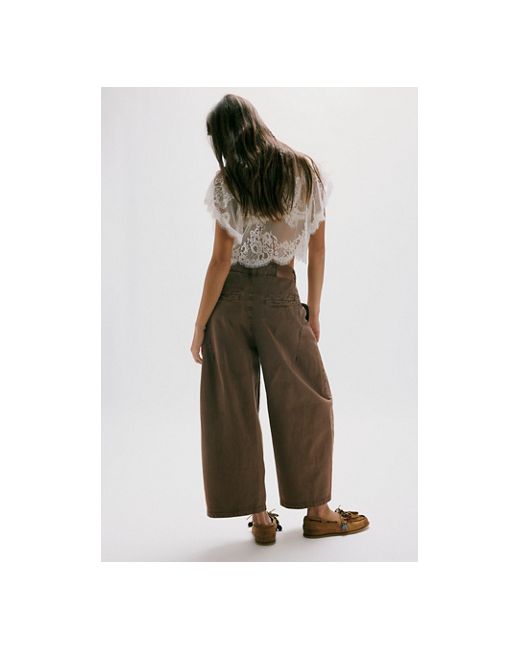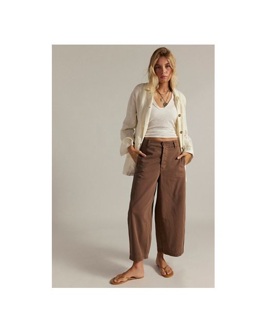 Forever cool and classic, these totally timeless chino pants from our We The Free collection are featured in a high-rise, wide-leg style cropped just above the ankle with a slight barrel touch for added shape. **Fit:** Slightly fitted, high-rise, size up for slouchier look **Features:** Button closure and zip fly, side and back slit pockets, slight barrel shape **Why We ❤ It:** The perfect pair to take you from the workday to the weekend, these super cool pants are sure to be a staple in your pants collection for countless years to come. We The Free Lay Down Chino Pants at Free People in Brownie, Size: US 2