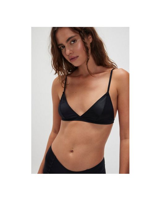 This essential triangle bra from Intimately features a soft, stretchy fabrication, a V-neck silhouette, and a high-shine finish for a subtle statement. * Soft, lightweight fabrication * V-neckline * Adjustable shoulder straps * Hook-and-eye back closure Shine On Triangle Bralette by Intimately at Free People in Black, Size: XS