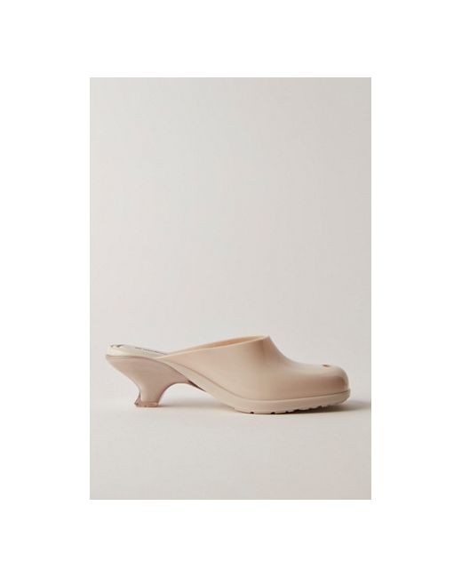 Minimalist, sleek, and eye-catching, these short heels from Melissa feature shiny PVC uppers with a hole at the toe and a short, asymmetrical heel for a distinctive silhouette. * Melflex PVC design * Backless heel * Asymmetrical heel * Square toe Melissa Gaia Heels at Free People in Light Beige, Size: US 7