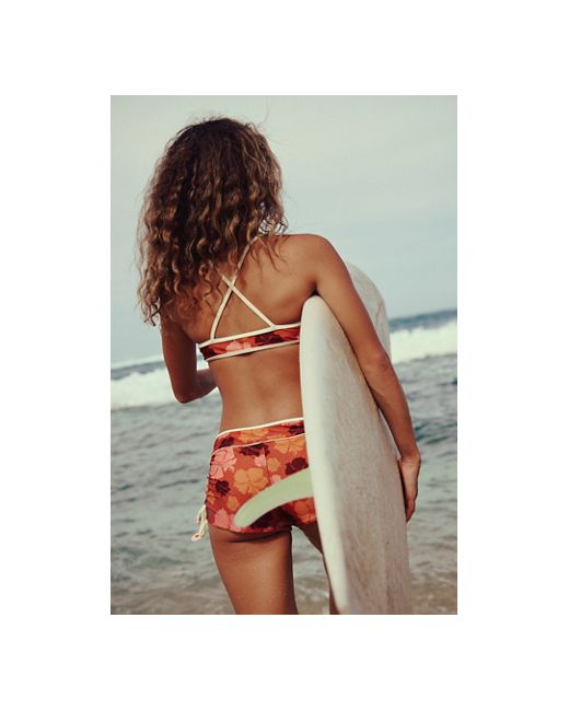 Reversible surf top from Strait The Label, crafted in a reversible silhouette for seamlessly going from gym to swim. **Fit:** Fitted; square neckline; crisscross back. **Features:** Square-neck swim top; supportive shoulder straps; seamless with stay-put support; UV protection; double-lined. **Why We ❤ It:** Water-adventure ready and made for matching. Strait The Label Daze Surf Top at Free People in Hibiscus Kiss, Size: Small