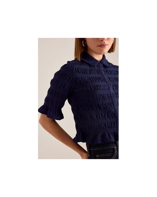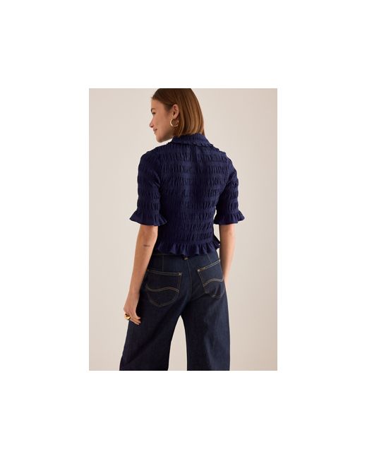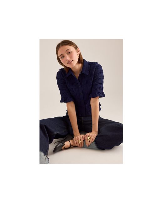 By Maeve 98% Polyester, 2% Elastane Button front Machine wash Imported Fit: We have found this style runs small; we recommend sizing up for an ideal fit Ruffle Button-Front Top by Maeve in Blue, Women's Size: XS, Polyester/Elastane at Anthropologie