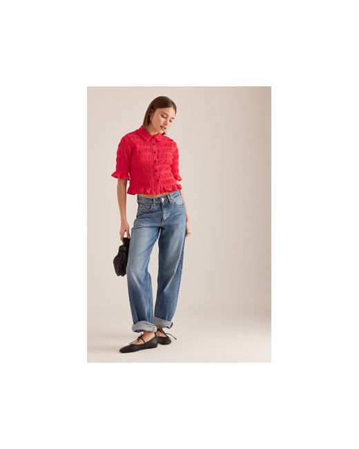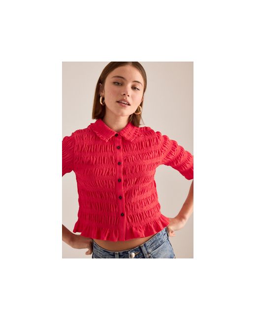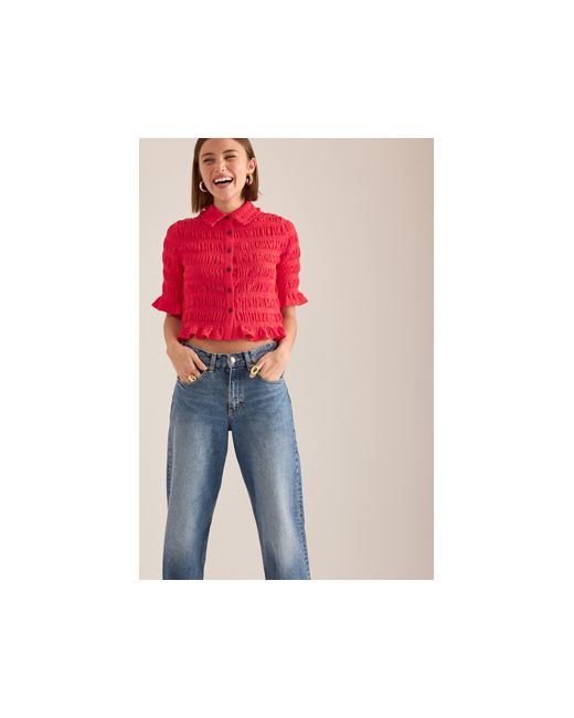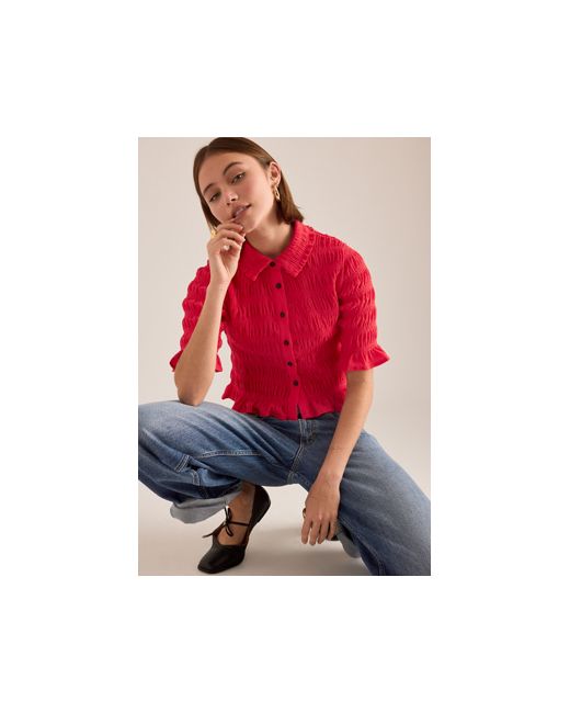 By Maeve 98% Polyester, 2% Elastane Button front Machine wash Imported Fit: We have found this style runs small; we recommend sizing up for an ideal fit Ruffle Button-Front Top by Maeve in Red, Women's Size: XS, Polyester/Elastane at Anthropologie