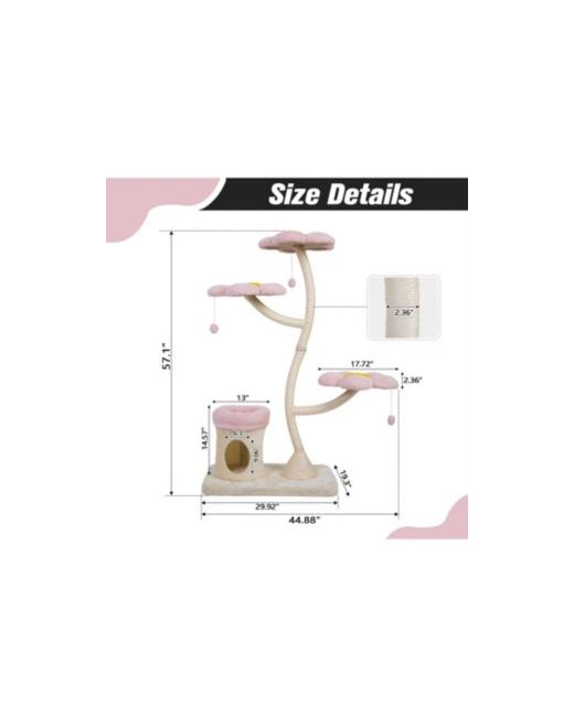 Charming Floral-Themed Design: This cat tree features a soft pink and beige color scheme with unique flower-shaped platforms and curved branches, blending playful decor with functional cat perches. Built for Safety and Durability: Constructed from thick particleboard, plywood, and sisal-wrapped metal tubes, it offers a sturdy and stable structure with a plush finish for added comfort.