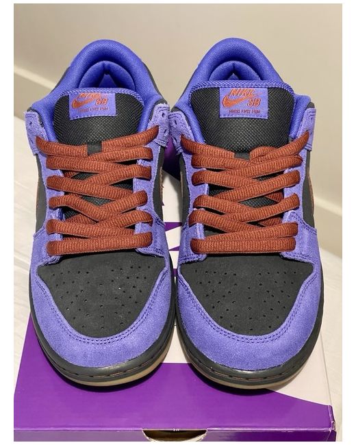 The Nike SB Dunk Low Pro in Persian Violet is a stylish and comfortable trainer perfect for casual occasions. Featuring a low top design and lace-up closure, these sneakers offer a standard shoe width and are crafted with a suede upper material and fabric lining. The rubber outsole provides durability and traction, ideal for skateboarding activities during the summer and spring seasons. With a striking Persian Violet/Cinnamon colour scheme and the iconic Nike brand, these sneakers are a fashionable choice for men looking for a versatile and trendy footwear option.