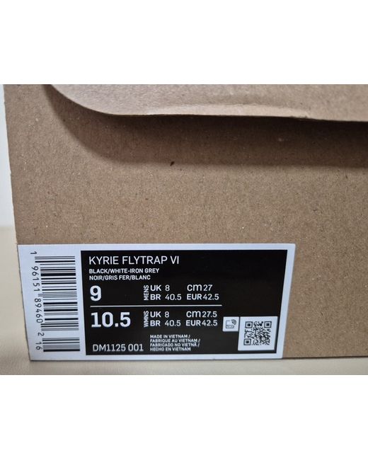 Nike's Kyrie Flytrap VI is a basketball-inspired shoe known for offering excellent traction. This model features a black mesh construction, highlighted by a white Swoosh on the sides, and sits atop a foam midsole and Zoom Air unit in the forefoot that provides soft cushioning. Composition Sole: Rubber 100% Outer: Mesh 100% Lining: Mesh 100%