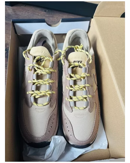 The Nike Air Force 1 Wild in UK shoe size 4 is a stylish unisex sneaker designed by Nike. Featuring a wheat gold colourway, this trainer combines classic Nike Air Force design with a modern twist, making it a versatile and trendy choice for both men and women. The comfortable and durable construction of this sneaker makes it suitable for everyday wear, whether for casual outings or athletic activities.