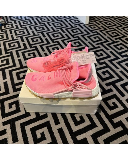 The Brand New with tags adidas Men's Pharrell Williams human race bright pink trainers in size 7 offer a stylish and comfortable option for casual wear during the summer season. Featuring a low top design, lace-up closure, and rubber outsole, these sneakers are part of the adidas Pharrell Williams collection. The bright pink colour and standard shoe width make them a versatile choice for both men and women who appreciate a colourful and comfortable footwear option. Perfect for adding a pop of colour and personality to any outfit.