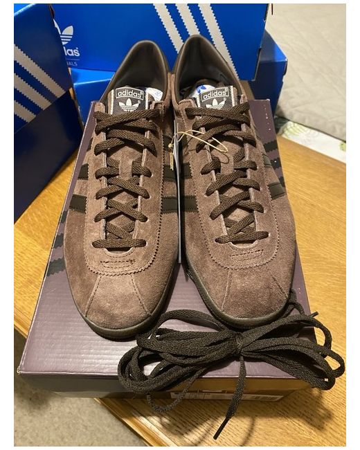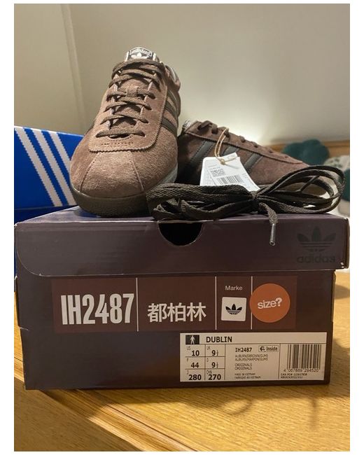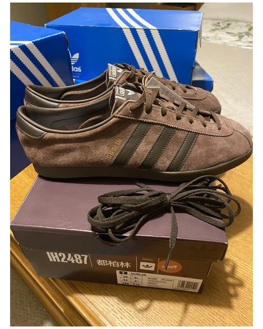The adidas Dublin Brown 9.5 trainers are a stylish and versatile choice for men. Featuring a low top design with a lace-up closure, these sneakers are perfect for casual occasions during the spring season. The brown suede upper and rubber outsole add a touch of sophistication to the classic adidas style, making them a must-have for any fashion-forward wardrobe. Also comes with 1st day release pin badge.Uk buyers only thanks.