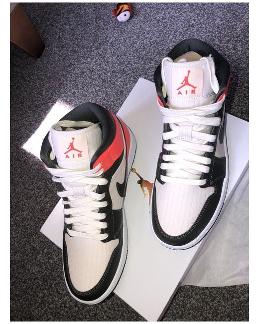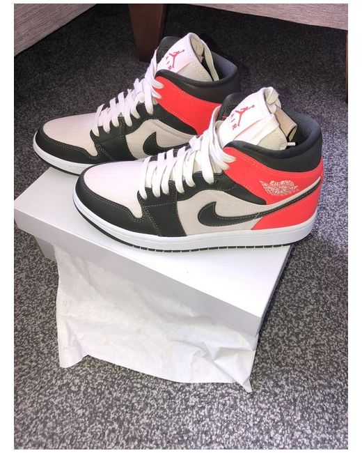 Air Jordan 1 Mid (Unisex) Light Orewood Brown/Bright Crimson / White/ Newsprint UK6 I have only tried these on once on clean carpet