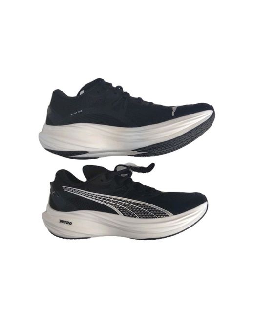 The Puma Men's Deviate NITRO 3 Running Shoes are designed for fast and neutral road running, featuring a lace-up closure and a round toe shape. Made with a breathable mesh upper and lining, these sneakers are perfect for casual occasions and sports activities like running and jogging. The rubber outsole provides durability and traction, while the Puma logo accents give them a stylish touch. With a standard shoe width and a low top shoe shaft style, these shoes offer comfort and support for the modern man looking for both style and performance in their footwear.